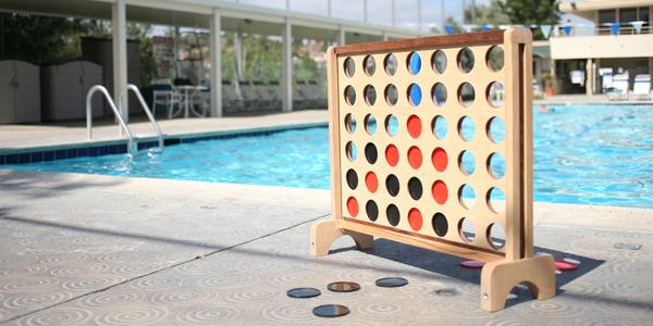 My picks for the top poolside & beach games of 2014 are: Giant Connect 4 Giant 4 in a row game poolside on a sunny day. Giant Tumble Tower Hammer...